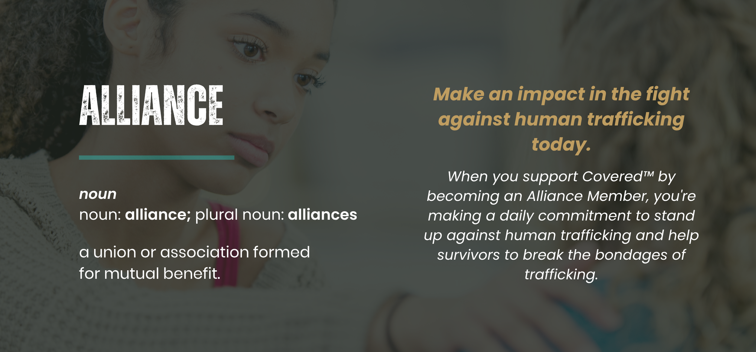 Alliance, our circle of monthly donors who are committed to putting an end to human trafficking. With over 100 members from all over the world, we are on a mission to change lives and empower survivors toward self-sufficiency.
